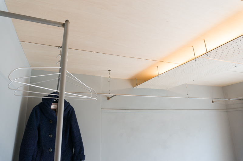 そして天井を見ると・・・ライトが穴の空いたボードに覆われています!