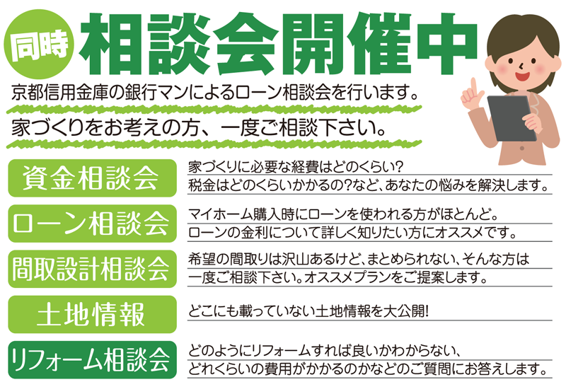 土地のこと、ローンのこと、リフォームのことなどの相談も承っているのでお出かけついでに相談するのもいいですね!!