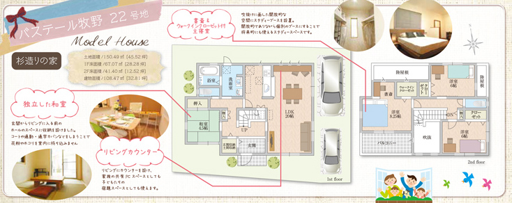 22号地はカウンターテーブルもあるので、お子さんの宿題をここで見てあげることができますね