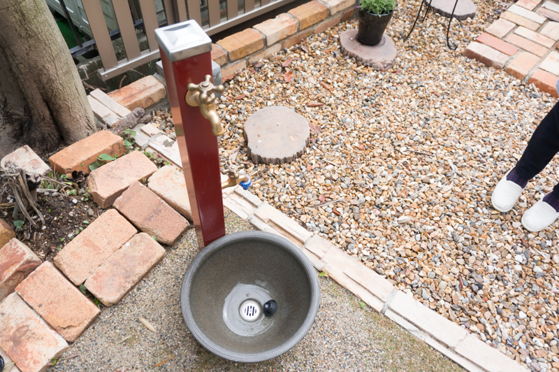 レンガのバーベキューコンロや立水栓はあるだけで存在感大!