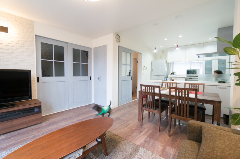 ドアも引き戸に変更して、開けた時に正面にあるリビングのドアとの接触がなくなって、ストレスフリー