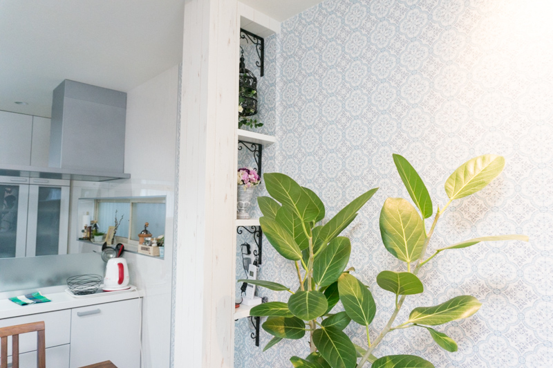 窓を無くして、一面に柄が入ったクロスを思い切って貼ったそう