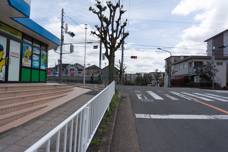 道なりにまっすぐ進み、左手に紳士服団地配置図の看板が見える交差点を左折します。