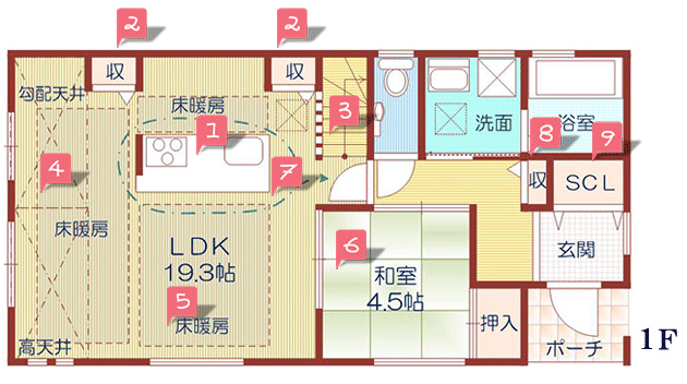 | 構造 | 旭化成パワーボード貼 スレート葺2階建 フラット35S対応住宅 |