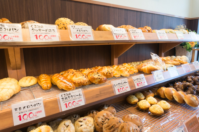 店内で焼かれた、100円で買えるパンがズラリ。