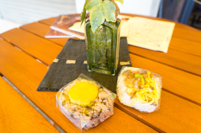 丹波パピー農園で生産された安心なもち米(黒米)を混ぜて炊いたご飯に、甘みの多いさつまいもが入ったおにぎり(左:117円)がめっちゃ美味しかったです!