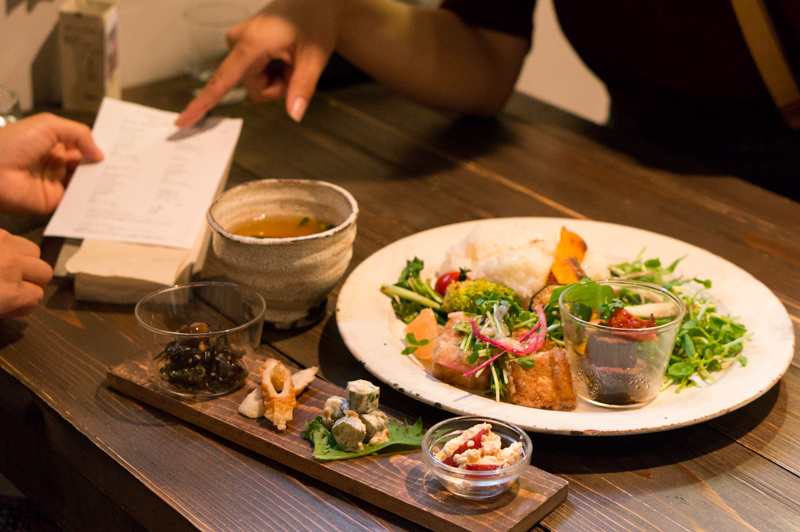 釜戸で炊くご飯・自家製味噌・大豆や旬の野菜をたっぷりと使用した、1食で30品目近く使用した身体にやさしいランチを召し上がっていただけます。お店を通して出会う様々な方とのご縁を大切に、これからも皆様と共にこのまちで暮らしに関わるさまざまなことを発信させていただきたいと思っています。