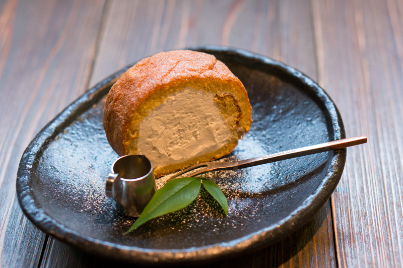 ふろ@ひらつーが食べているのは大人気のハチミツのロールケーキ。