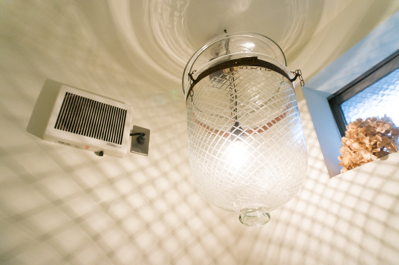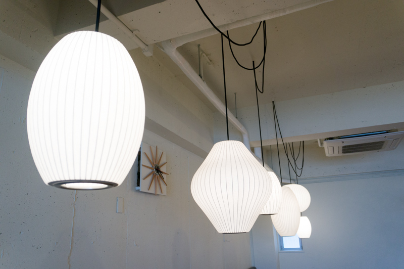 ソファ席の上にはひとつひとつ形の違うかわいいランプが