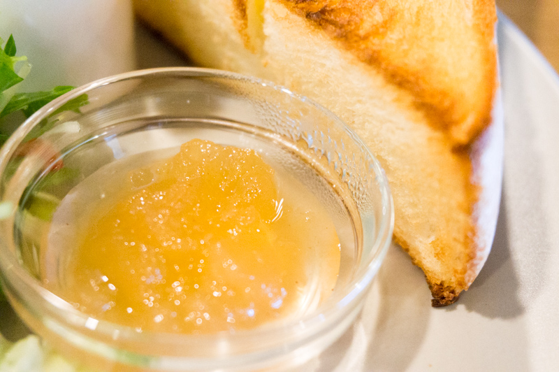 厚切りトーストの横には自家製りんごジャム。