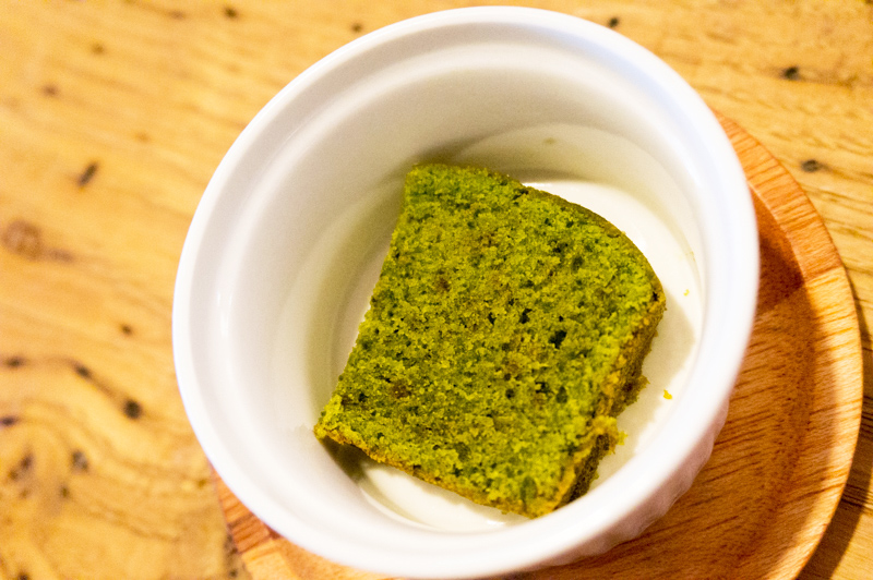 この日は抹茶ケーキ。ちなみにドリンクのみ注文された方にもこのデザートが付きます。