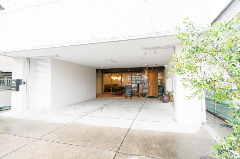 入り口前にはこんな広ーいスペースが。車・自転車はここに停めていただけます。