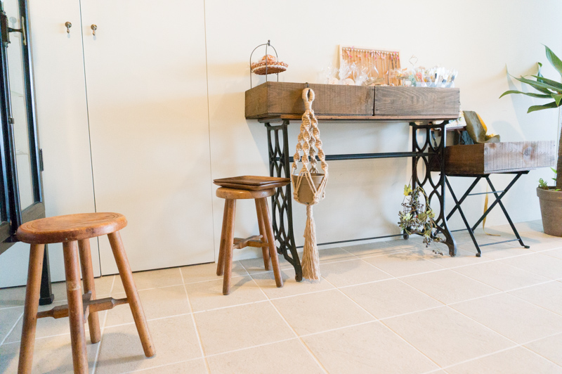 写真中央に写っている、麻ひものプラントハンガーもワークショップで作った作品です。