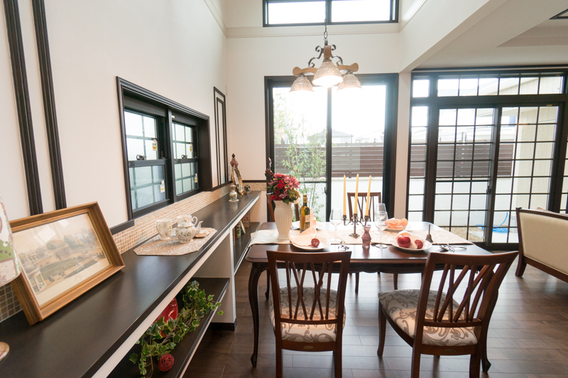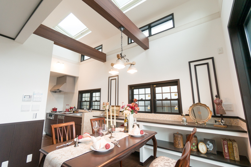 まるで異人館のような、白壁で高級感あふれる高天井の明るい家