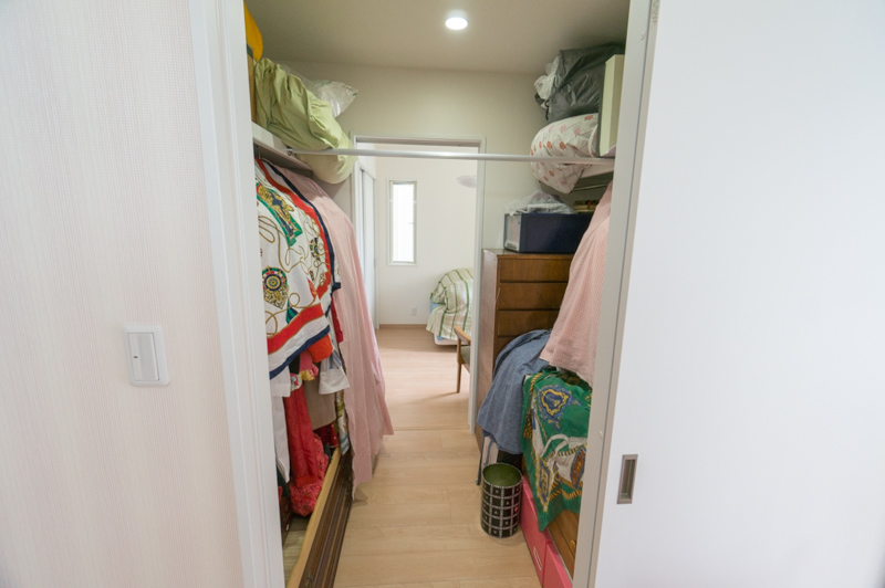この収納アイデアは、奥様がセミナーにも参加されたという、空間プロデューサー安東英子先生の収納術からヒントを得て付けられたそうです。「このポールは、外出時によく使う上着なんかをかけて置けるポールなんです。外から帰ったらすぐ引っ掛けられるし、翌日着る服とか掛けて置けるんです!すごく便利!!」
