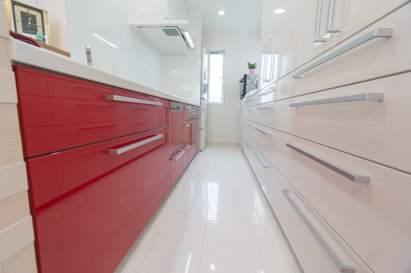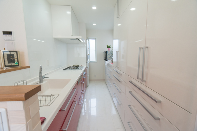 K様(奥様)「本当にこの広い廊下とカウンター付き収納は、このお家のお値打ちになりました!とっても気に入っています!来てくれたお客様みんなここを見ていいね!って言ってくれるんですよ! 」