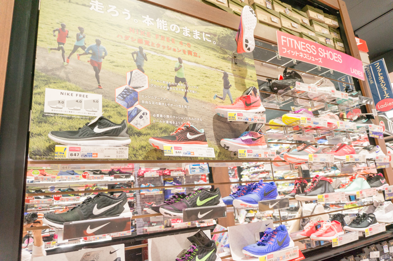 さて、お次はランニングに使えるシューズのコーナーへ。