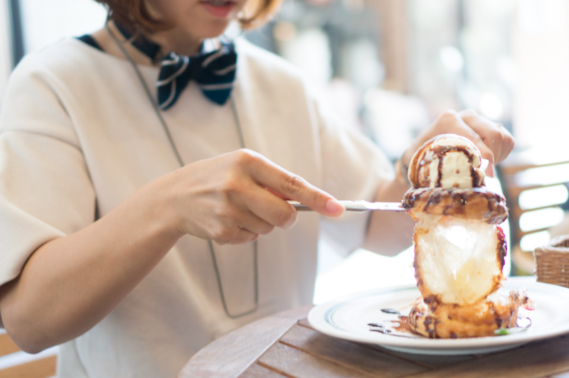 ソースはチョコ・キャラメル・マーマレードなど6種類から2種類を選べます。