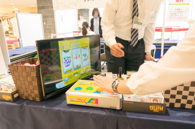 スロットが揃うと、うれしいお買い物券がその場で当たる!