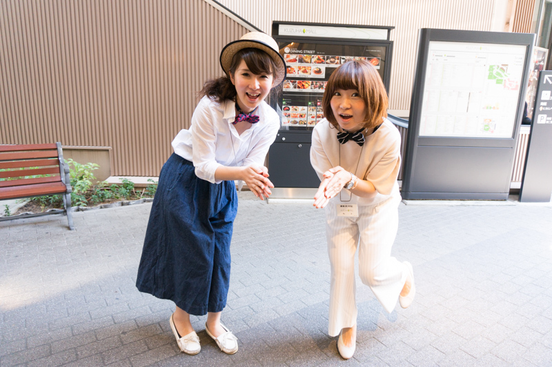 入り口でふろが渡した蝶ネクタイをつけた2人。