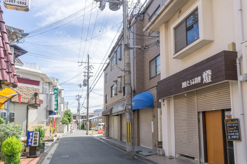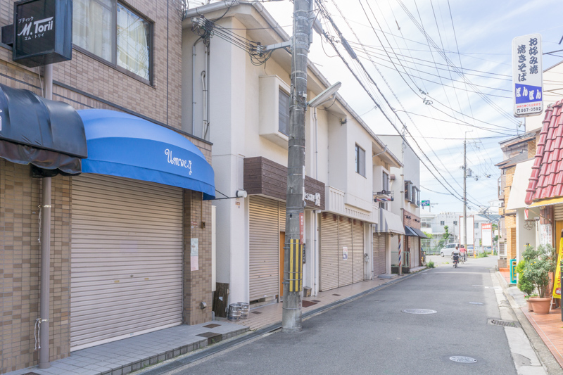 反対方向にいくと、交差点「楠葉中央」から北側へ出ている道路と交差し、そこを左に曲がると樟葉小学校などがあります。