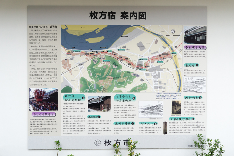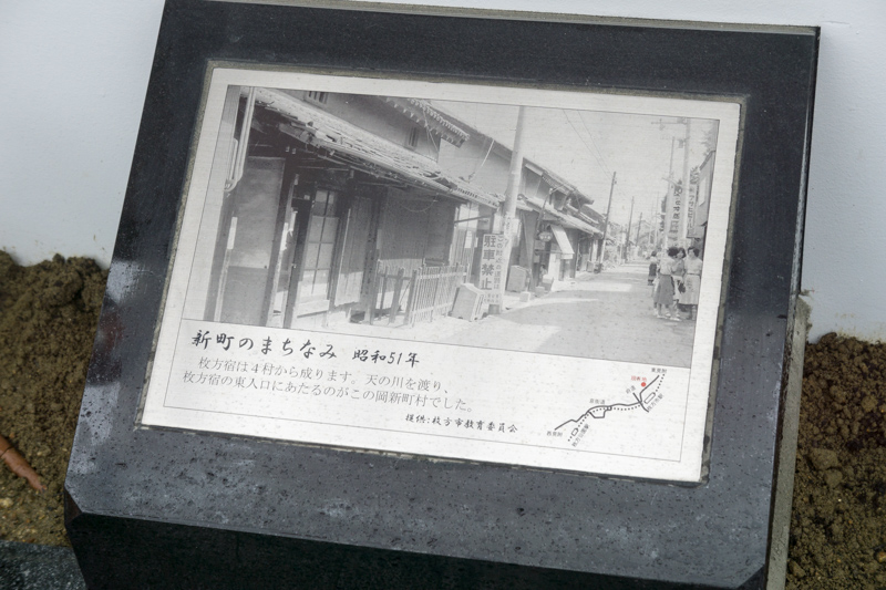 枚方宿の案内図も塀に設置されています。