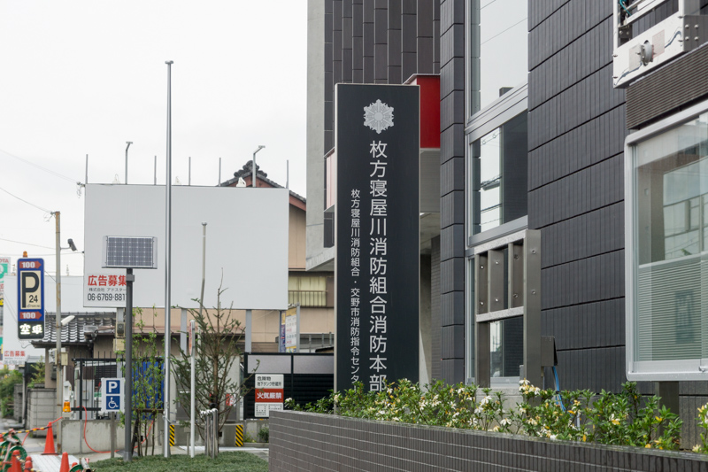 「枚方寝屋川消防組合消防本部」の看板がありました。