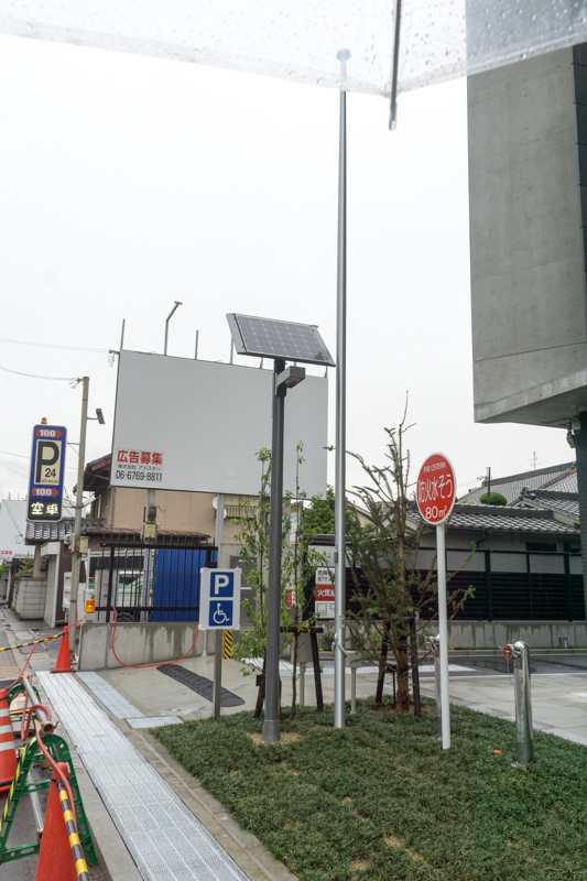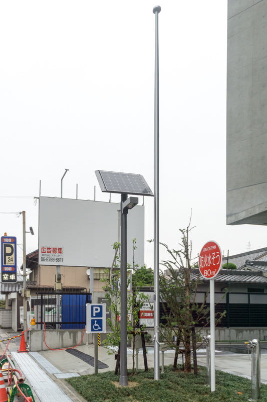 入り口となりには太陽光パネルがついた電灯が。