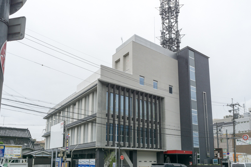 旧1号線ぞい新町につくってた「新消防本部庁舎」の外観がほぼ完成してる。全面運用は東洋ゴム問題で3月以降へ