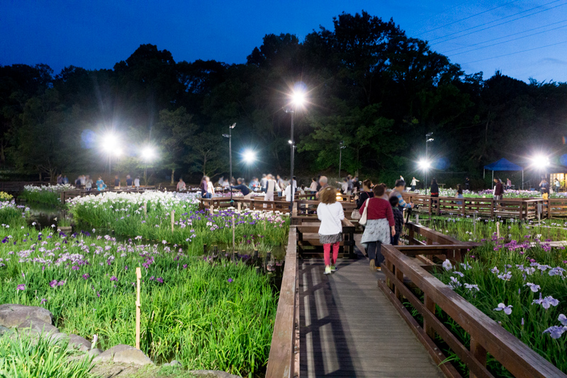 山田池公園の花しょうぶ園が開園してる。ライトアップは6月6日から
