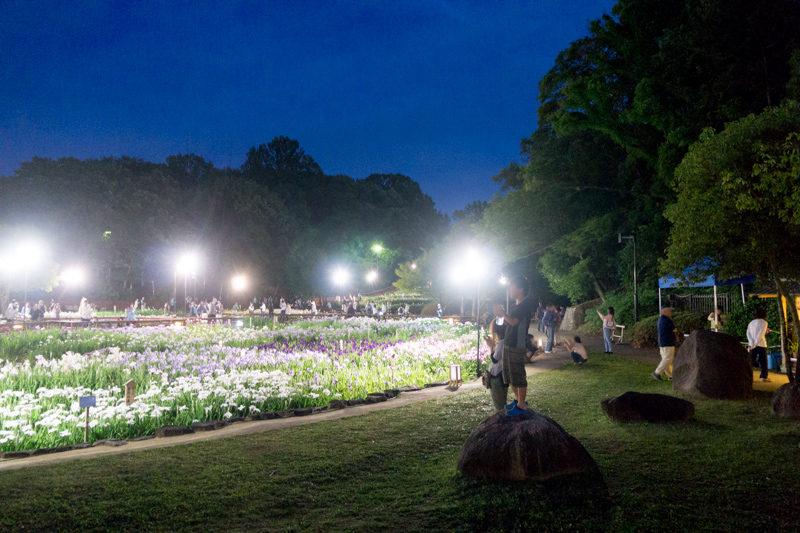 見たとおり、大人気の花しょうぶ園のライトアップ。