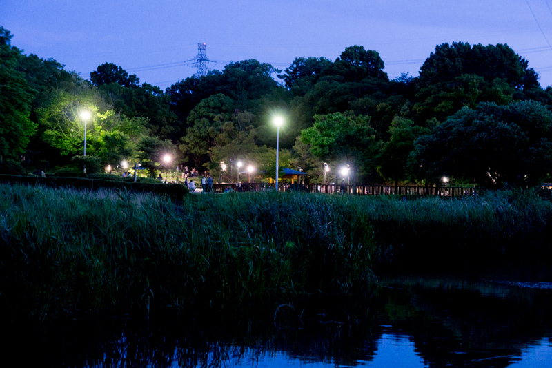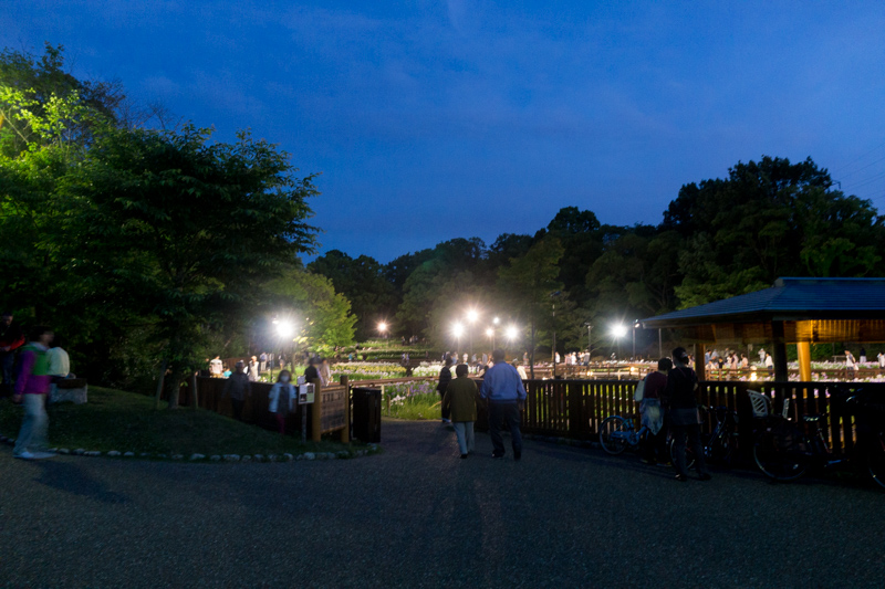 山田池公園の花しょうぶ園のライトアップがはじまってる。花しょうぶグランプリ2015の投票も