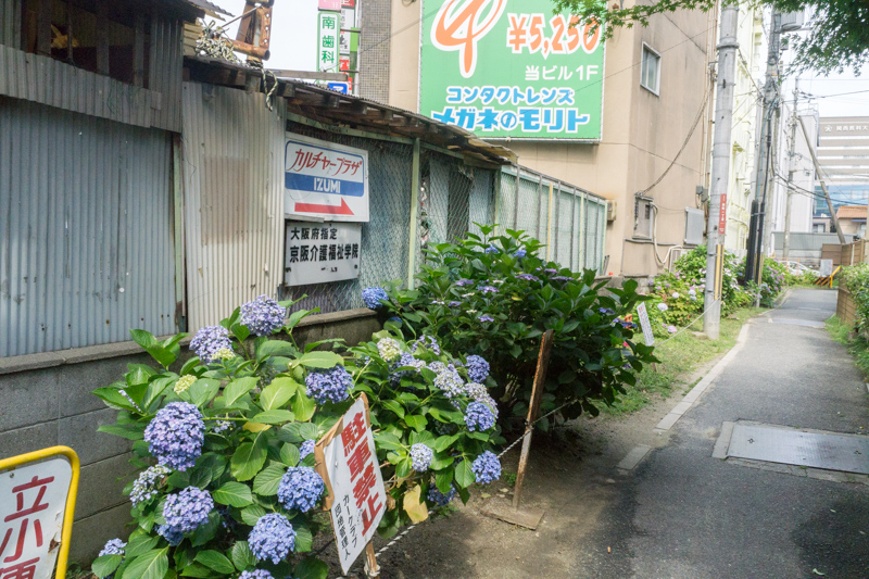 枚方市駅そばの古い団地の、ちょうど、旧長崎屋裏に あじさいが植えられているのですが、まあこんなとこに意外にも各種あじさいが!という感じで