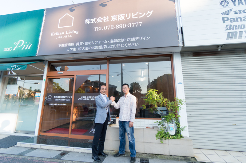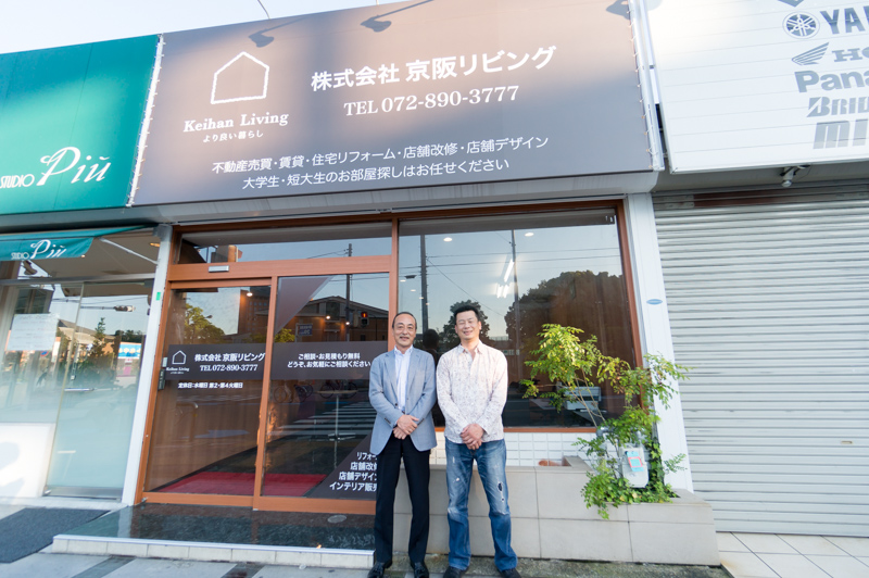 京阪リビングの北川社長(左)と施工デザイン担当の道下さん(右)にお話をうかがってきました。
