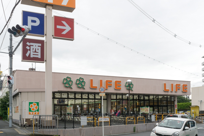 向かいにはライフがあり、すぐそばに牧野駅があります。