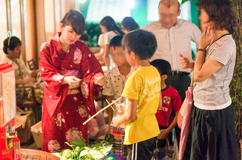 お子さま向けの「スーパーボールすくい」「輪投げ」「1円玉落とし」を企画しています