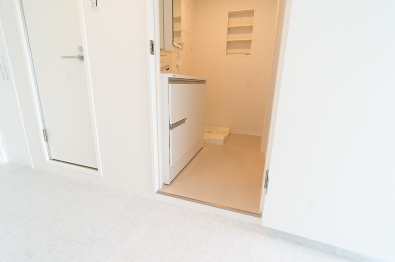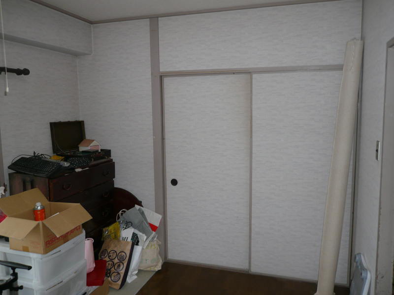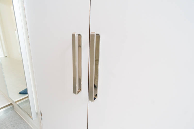右手見える姿見とその横の取っ手は新しく作られた収納。