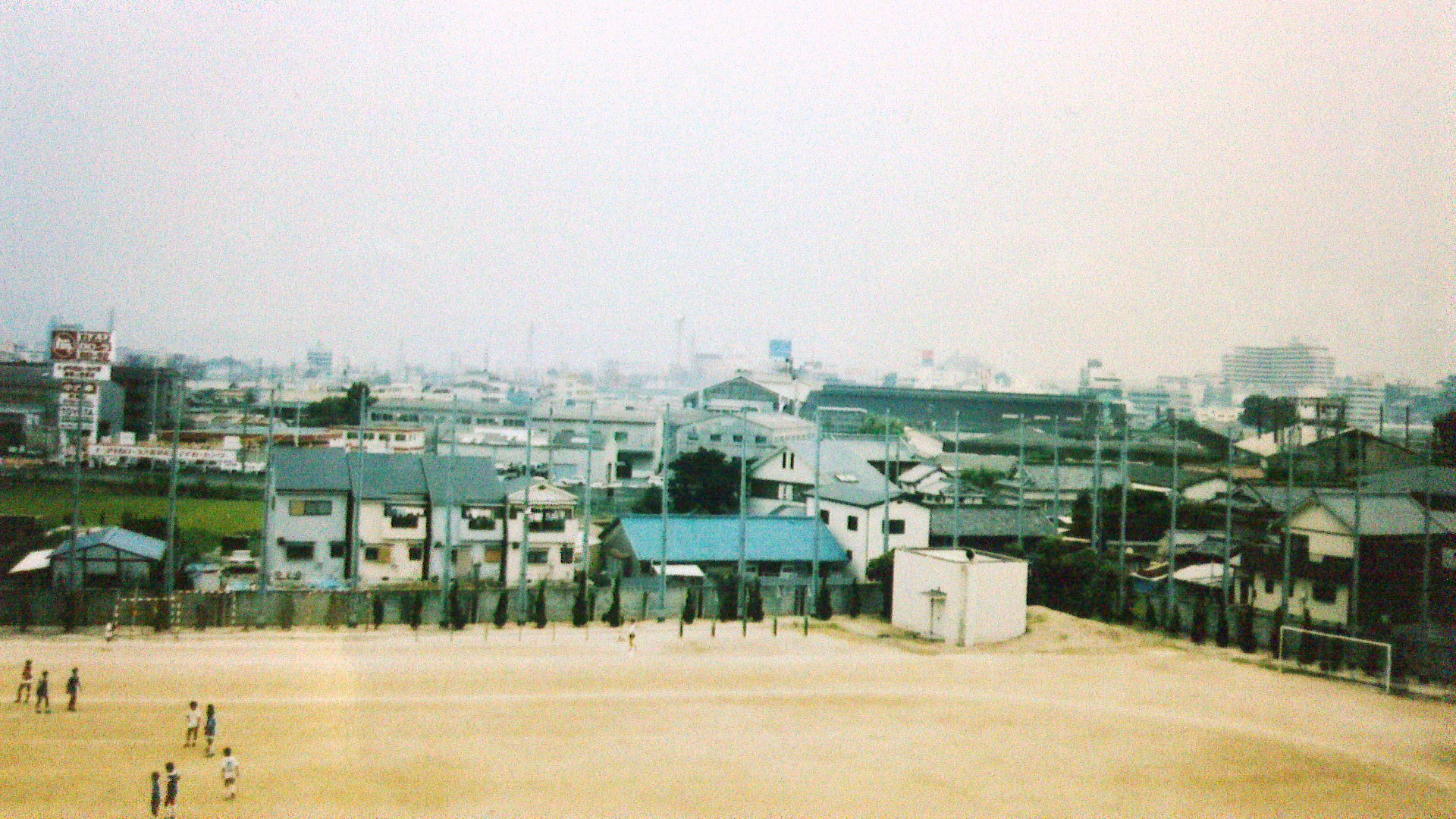 ◇コメント 卒業後磯島高校を訪れた時に撮影しました。天気が悪くて残念な写真になってしまいました。この頃は周りに高い建物がほとんどなく天気が良ければ生駒山が見えたと思います。