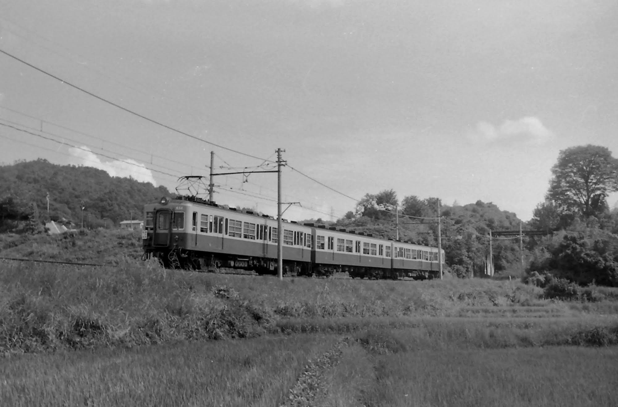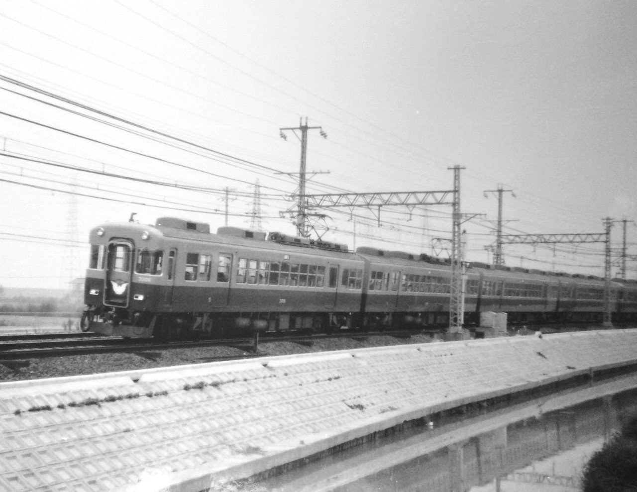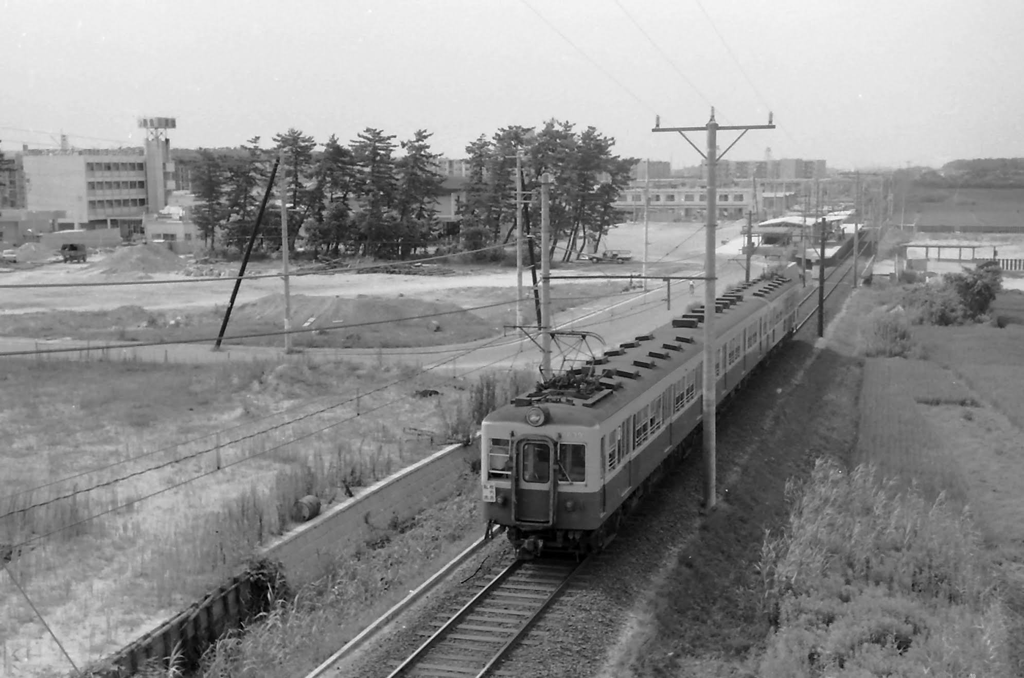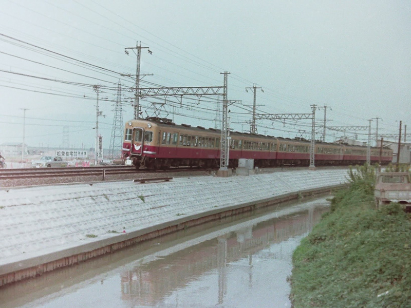 ◇コメント 踏切横の黒田川?に架かる橋の上から撮ったもので、当時は柵も無く、バックには建物がほとんどありませんでした。 電車の種類的には、700系、1900系、3000系といったところでしょうか。 4、5枚目は同じ橋の上からカラーフィルムで