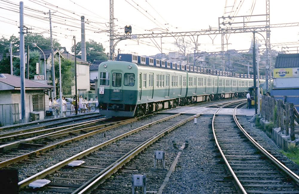 ◇コメント 私が中学2年の時、友達と3人で御殿山駅前の旧国道に架かる歩道橋の上から撮影したものです。 当時は道路と線路の間に柵も無く、道路には歩道も無いという、すべてが自己責任の古き良き時代でした。 駅も今ではラッシュ時用の改札口が旧国道側に作られていますが、当時は南側の改札口だけでした。 それにしても42年前の歩道橋が今も現役なのは素晴らしい事です。