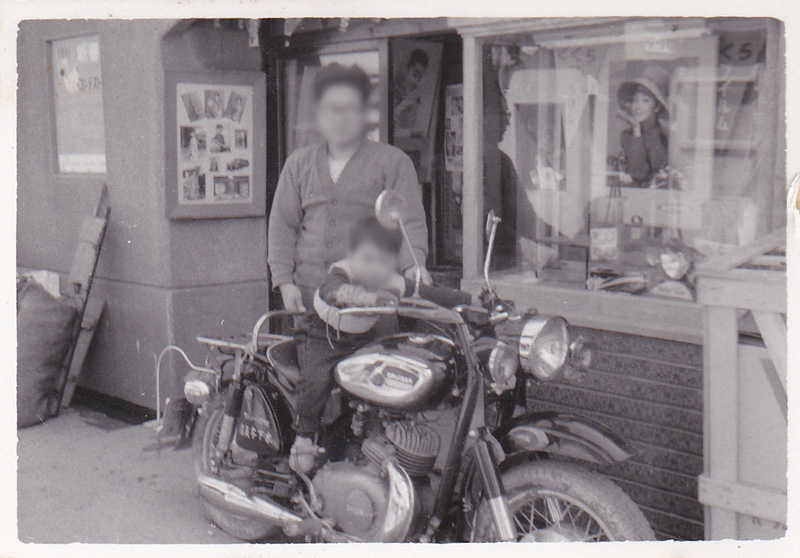 続いてこちらは枚方公園駅前にあった木下写真館の前。よくみたらバイクに店名が。