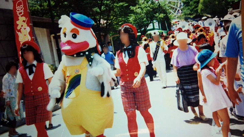 ◇コメント 菊人形展の前とパレードの写真。 キャラクターと歩くお姉さんの髪型に時代を感じました(笑) これはちょうどお化け屋敷の前あたりだと思います。