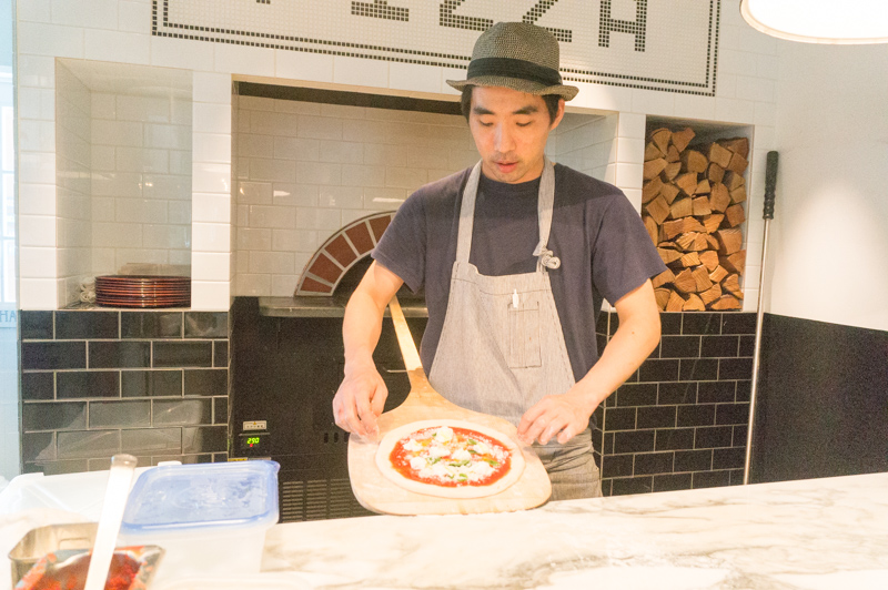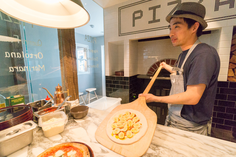 ピザ職人の会田(ごうだ)さんに焼いてもらいました。