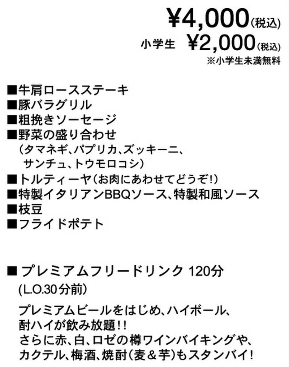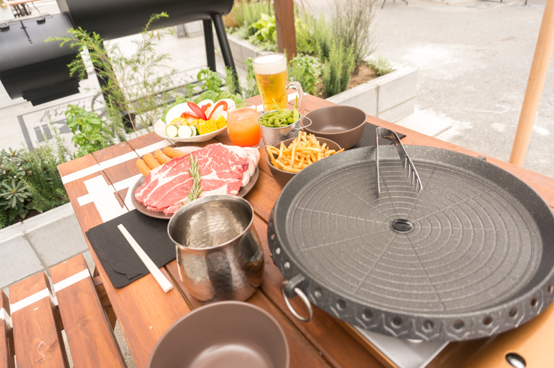 バーベキューフードをそれぞれのテーブルでワイワイ焼きながら味わえます。