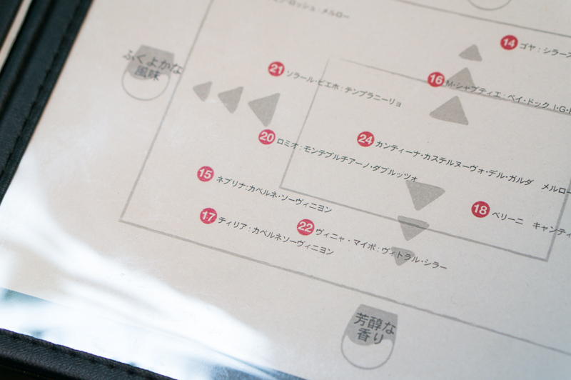 メニューにはワインチャートがあるので、風味や香りが一目でわかります。