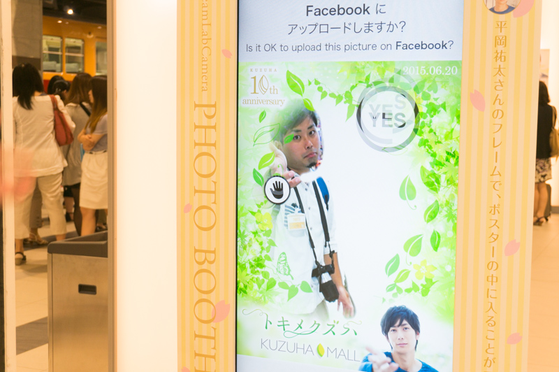 会場には teamLabCameraというプリクラみたいな機械(正しくはFacebook連動型サイネージ)があったので、すどん@ひらつーが『トキメクズハ』ポーズに再挑戦!