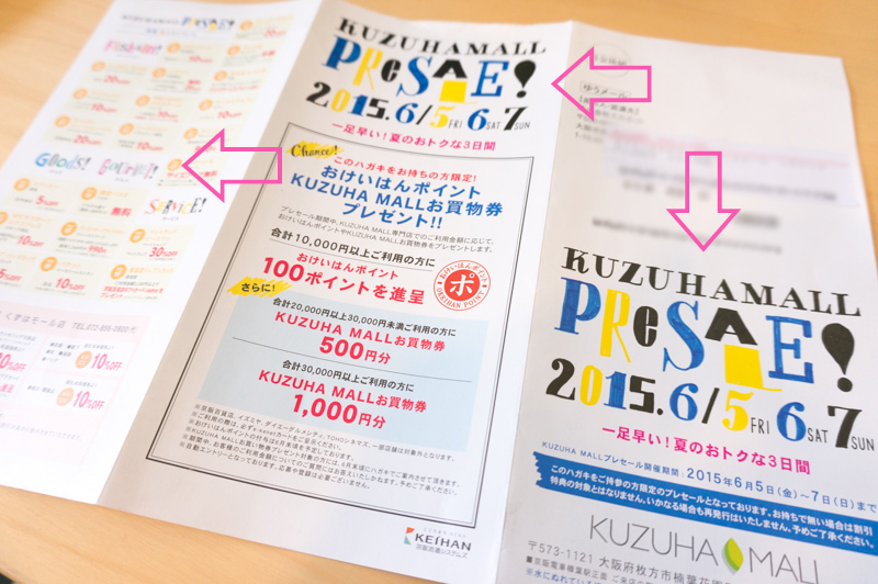 ー 6月上旬、仕事で疲れてよれよれになって帰宅したおさや@ひらつーを待っていたのは、くずはモールから届いたDM。