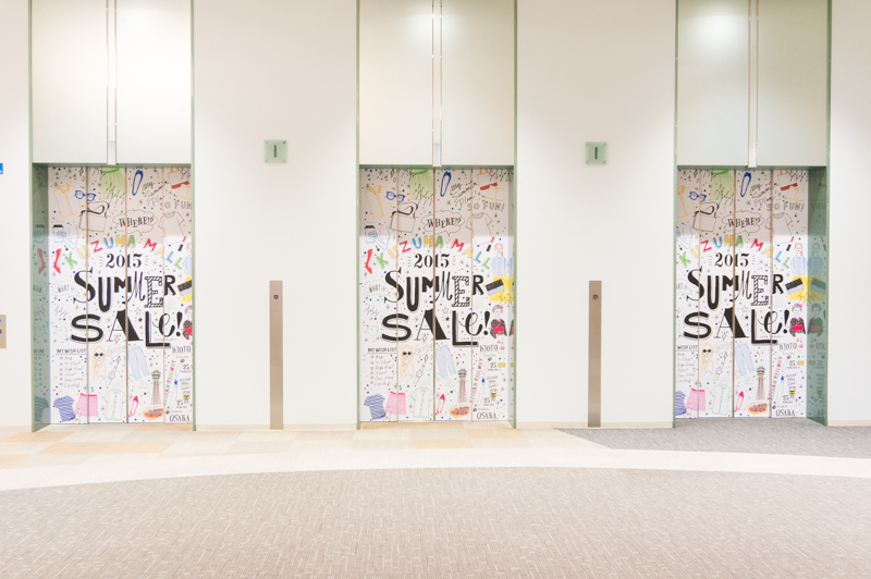 エレベーターにも垂れ幕がいっぱい集合!