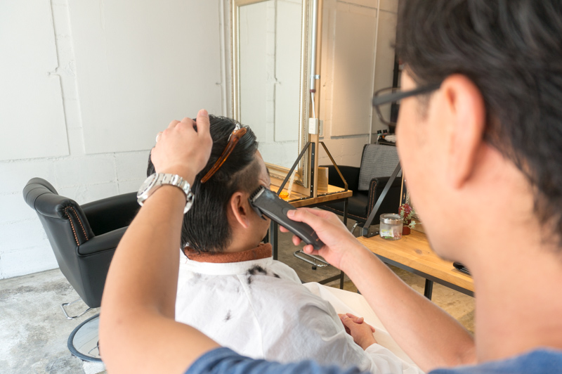 子どものような笑顔の上野社長にバリカンを入れてもらい…