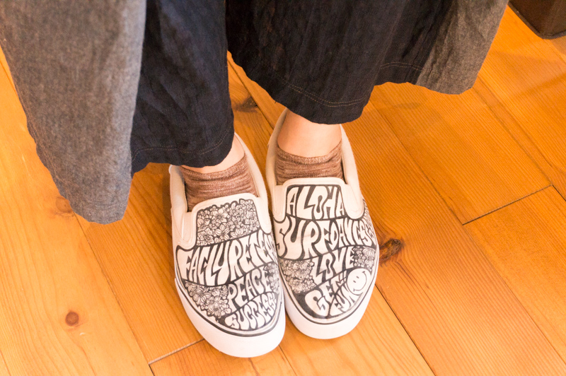この可愛いスニーカーはアクセサリーも作っている作家さんのブランド『marble』のもの。